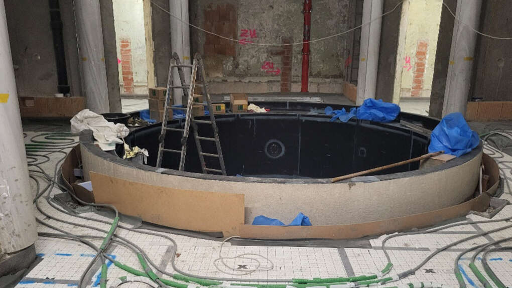 Wie es von außen aussehen wird, zeigt das erste Bild. In der Dampfkuppel geht es ebenfalls voran. Das Bild in der Mitte zeigt, wie es zur Eröffnung dort aussehen wird.